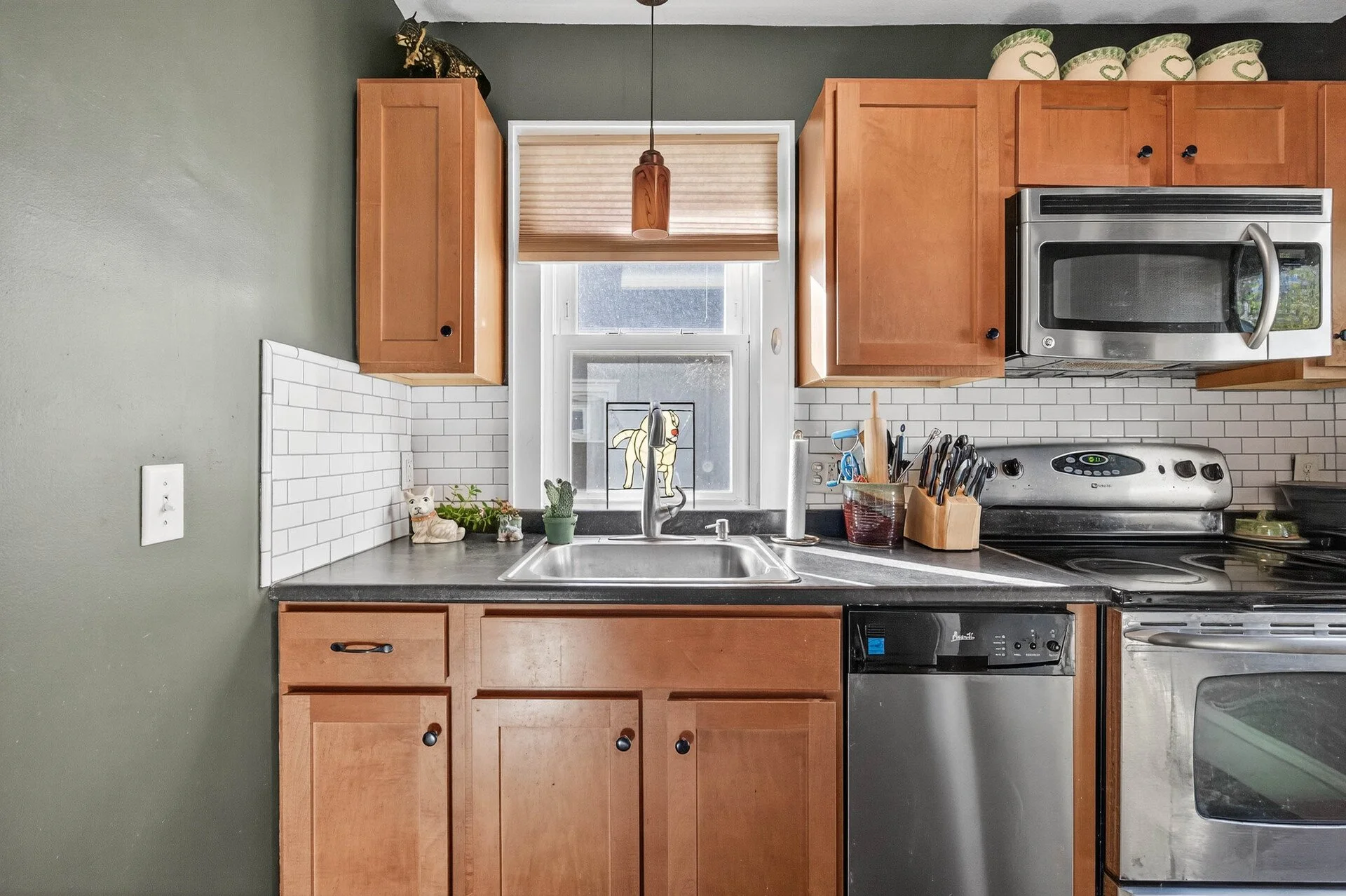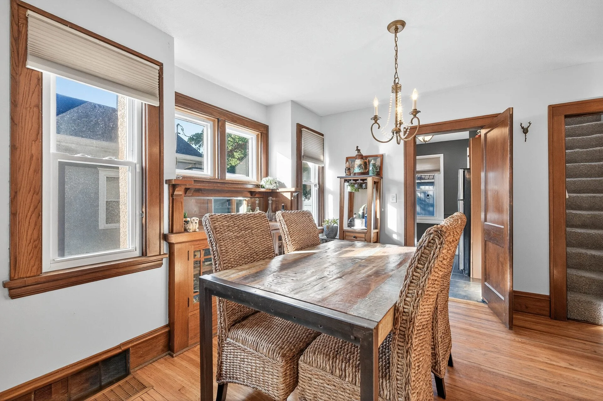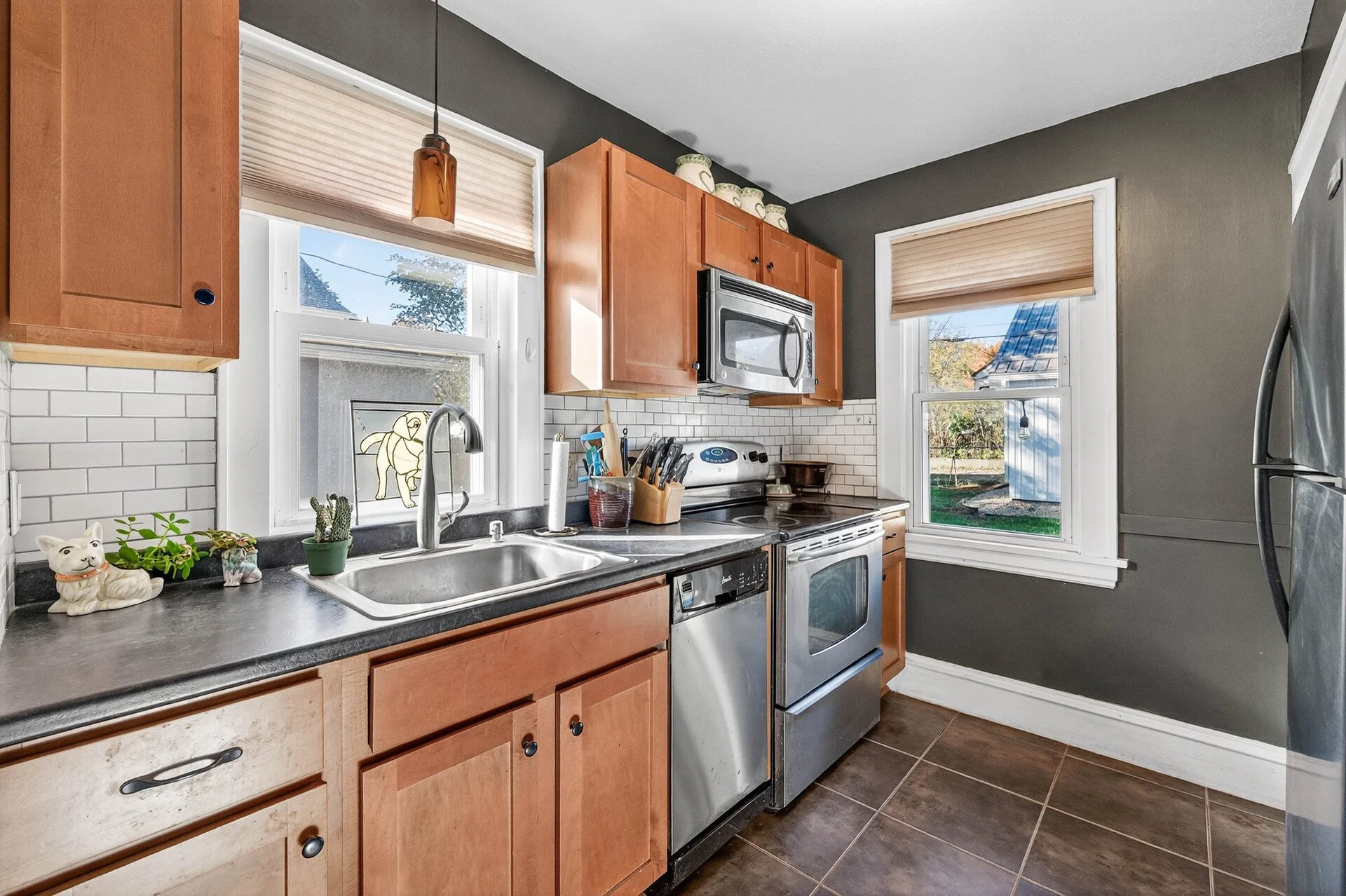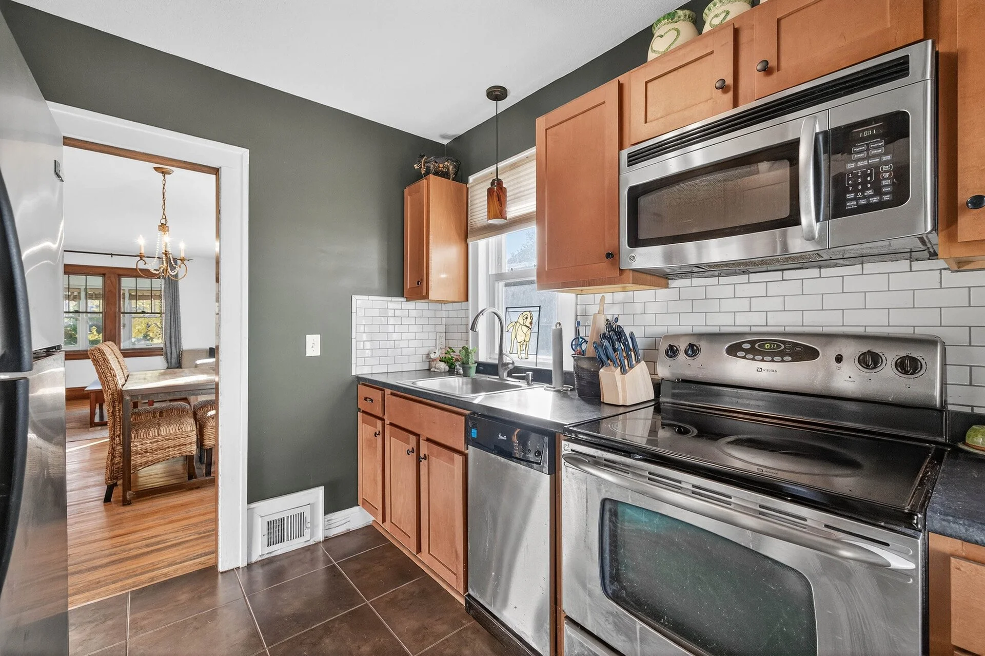 There’s something special about Architect Avenue— rolling hills, mature trees, and a sense of calm that feels miles from the city, even though Central Avenue’s restaurants and shops are just around the corner. With Architect Triangle, Columbia Golf Club, and countless parks, trails, and attractions nearby, the location can’t be beat. This home fits right in with its surroundings, offering a welcoming front porch, original built-ins, and a thoughtful mix of updates. The kitchen keeps things simple and tasteful with quality tile flooring, a classic subway backsplash, and stainless details that never go out of style. The bath shows the same care, with full tile and a glass-block window that brightens the space. Upstairs, the spacious primary bedroom includes ample closet space, an office nook, and a private bath. The lower level adds laundry and flexible living space. Outside, a fenced, oversized lot features a large patio for entertaining and an impressive oversized two-car garage built in 2021 with metal siding and roofing. Updates include a new furnace and A/C in 2022. A rare blend of charm, character, and convenience in one of Northeast Minneapolis' most livable pockets.
